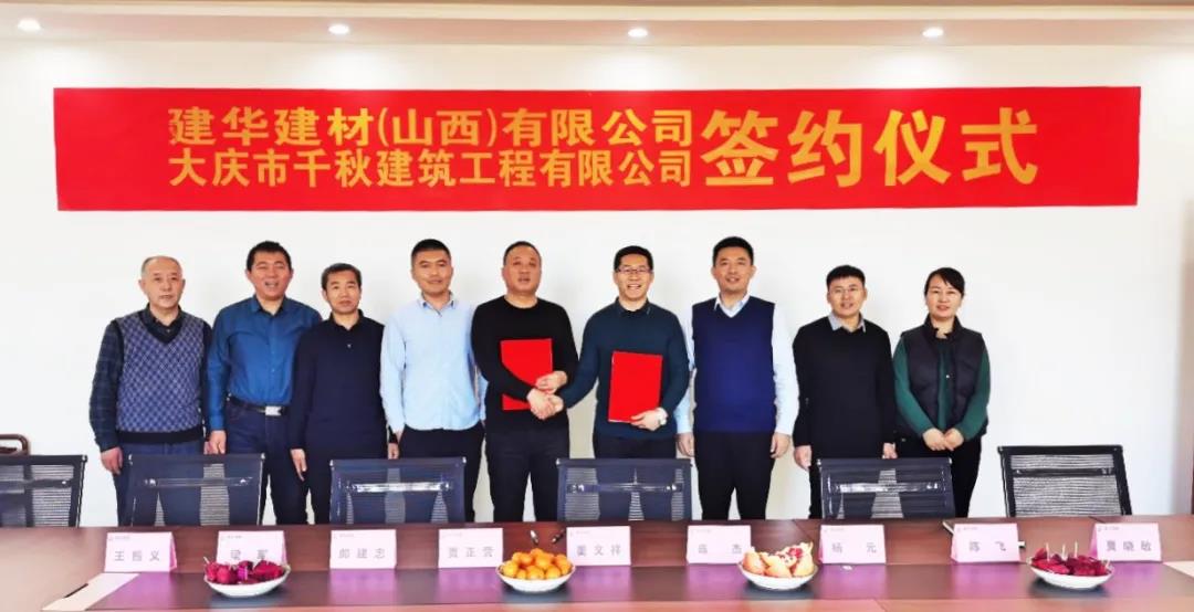近日,建華建材(山西)有限公司與大慶市千秋建筑工程有限公司(以下簡(jiǎn)稱千秋建筑)就萬(wàn)秋新型建材有限公司股權(quán)轉(zhuǎn)讓合作事宜舉行了簽約儀式。