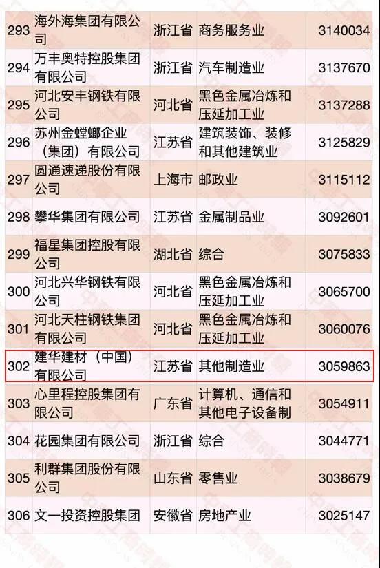 建華建材集團(以下簡稱建華建材)在2020中國民營企業500強中排名302位;在2020中國制造業民營企業500強中排名169位。
