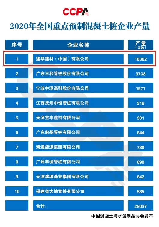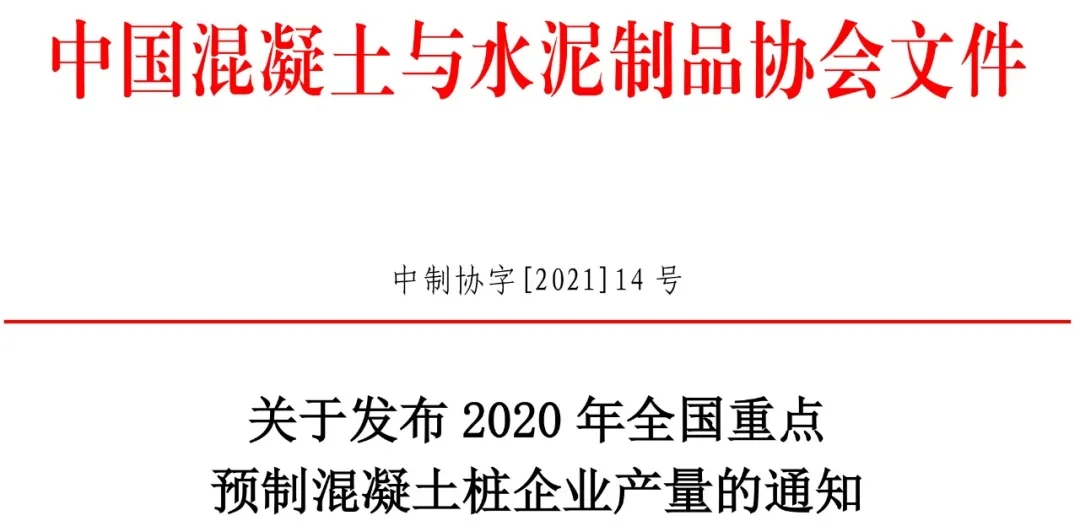 6月1日,中國混凝土與水泥制品協會對全國重點預制混凝土樁企業2020年生產經營情況進行了調研和數據統計,并發布了2020年全國重點預制混凝土樁企業產量排名情況。