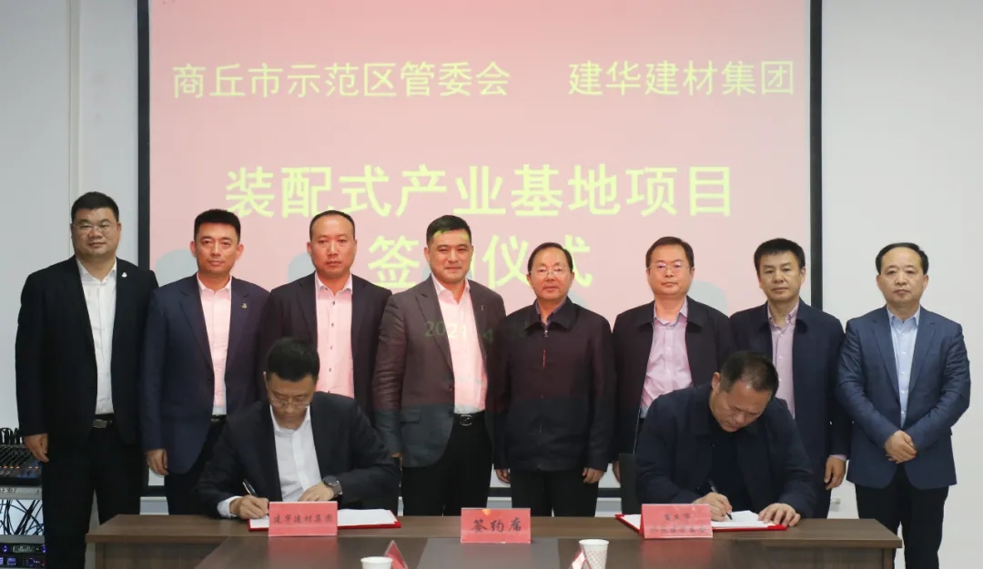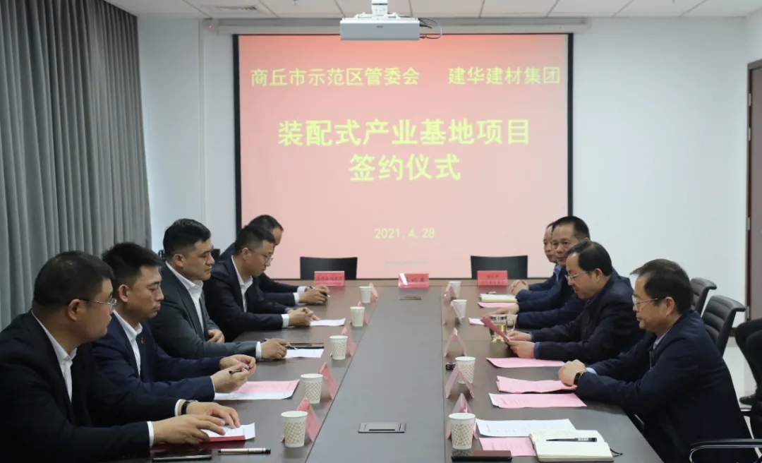 4月28日,建華建材集團與商丘市城鄉一體化示范區管委會舉行綠色智能裝配式建筑產業基地項目簽約儀式。商丘市人大常委會副主任、示范區黨工委書記何振嶺,示范區黨工委副書記王俊峰,黨工委委員、物流區管委會主任張留雁,黨工委委員馮新以及區經發局、住建局等相關部門領導;建華建材集團總裁助理兼投資發展辦主任汪峰,中原區域總經理劉勇,菏澤建華、徐州建華副總經理(全面負責)倪杰,投資發展辦副總監楊元等領導出席了簽約儀式。