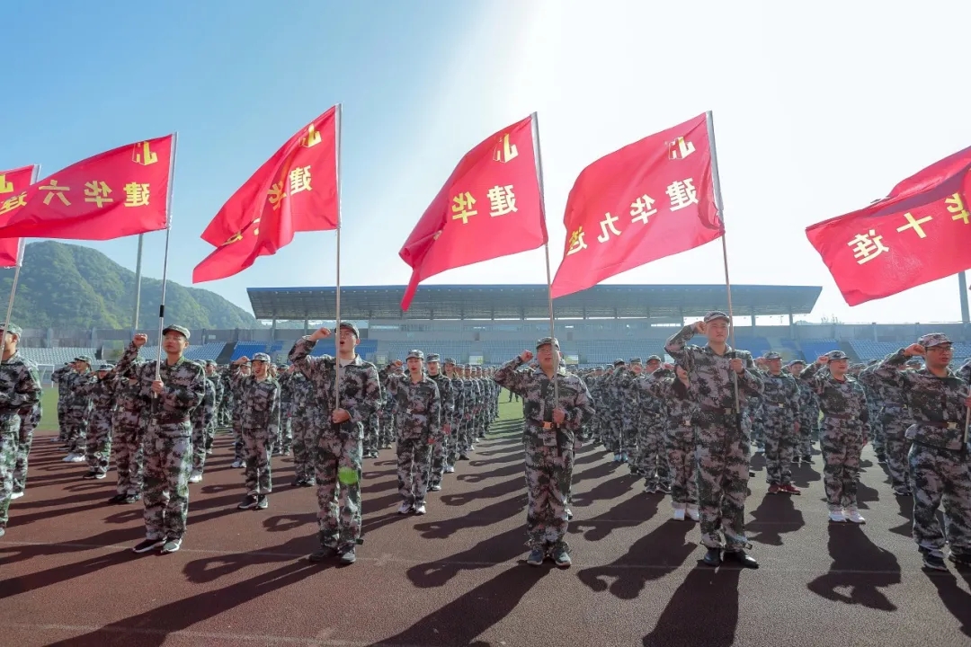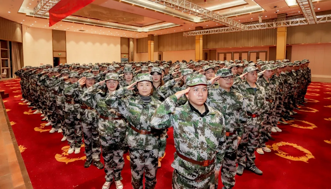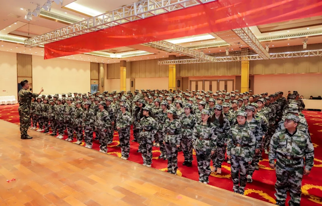 到達參訓地點,學員們迅速調整角色,端正態度,以飽滿的激情參加了分組儀式。16支連隊紛紛上臺展示風采,用激昂的口號和創意的造型,將會場氣氛帶向高潮。