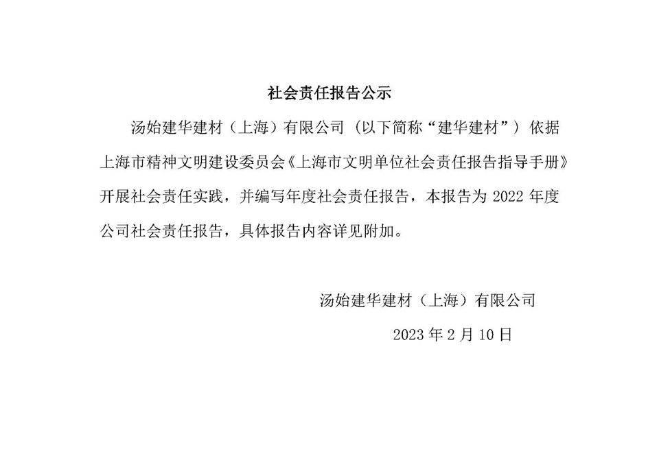 湯始建華建材(上海)有限公司社會責(zé)任報告(2023年度)見附件